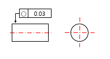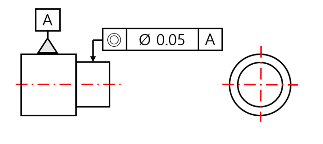 | 설명 | 횡단면표면요소는 반경 0.03차의 2 동심원내에 존재 해야 한다는 뜻 | 데이텀 A와 동심도가 0.05차이가 되어야 한다는 뜻 |