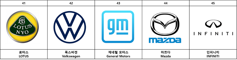 9.로터스, 폭스바겐, 제네럴모터스, 마쯔다, 인피니티